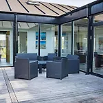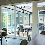 Situada a 4 km de Gydshoj, la villa 8567-Grenaa-Sletten-106 Fuglsang invita a los huéspedes a relajarse en una terraza.